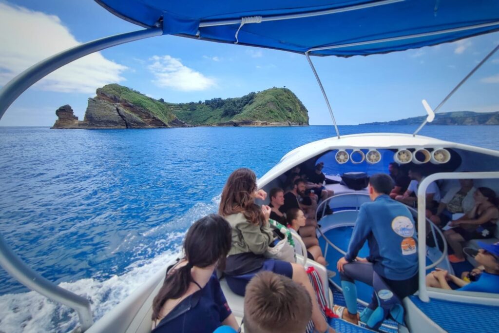 Mosteiros is famous for its volcanic islets and golden sunsets. During this boat tour, you’ll sail alongside rock formations, cliffs, and the Ferraria area. When the sun sets over the Atlantic, the scenery becomes cinematic — an unmissable experience on the island’s west coast. This is one of the most photographed areas of São Miguel — a top Azores sunset experience.